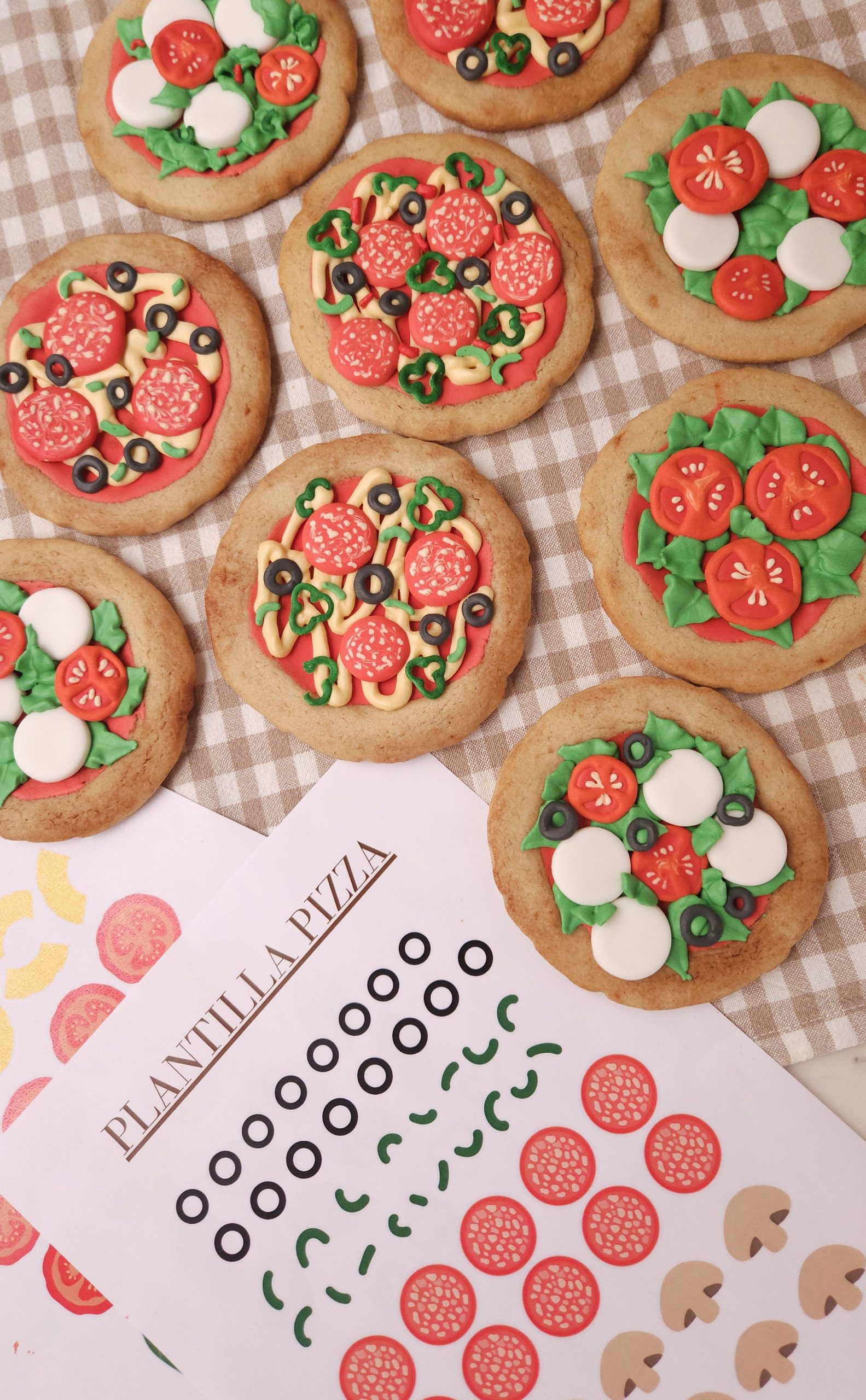 Os llegará al correo de manera automática el PDF con las plantillas y unas instrucciones y consejos para llevarlo a cabo. No es un curso, el vídeo de cómo hacerlo lo tenéis en mi instagram. Es una herramienta que os facilitará el trabajo y os permitirá practicar con formas muy sencillas a aquellas que os estéis iniciando en este dulce mundo. También para las más avanzadas que quieran practicar una nueva técnica y conseguir en este caso unas pizzas muy realistas y simétricas, como a mi me gusta.